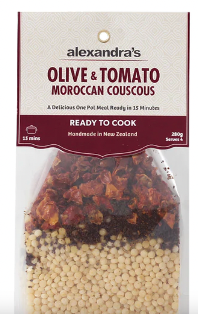 Traditional North African flavours of Olive and Tomato, Israeli couscous and our own Moroccan spices make an exotic dish rich in flavour as a side dish or on its own. Just add water.