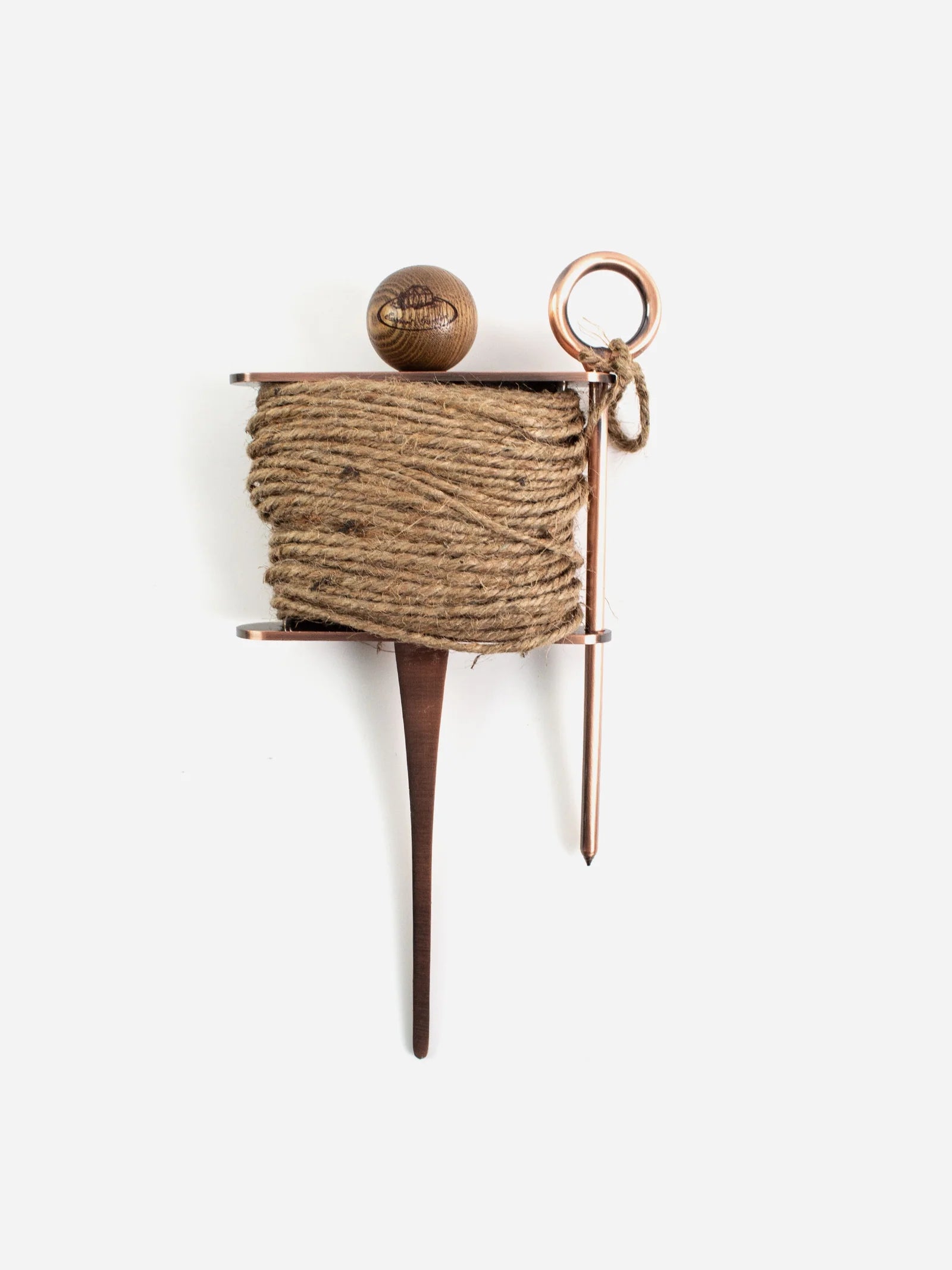 Copper plated planting line. Crafted from durable carbon steel and finished with a decorative copper plate, this traditional row marking set makes a practical and thoughtful gift for any green thumb. Designed to last, it comes with a 25m (82ft) jute rope that secures firmly without the peg coming loose when pulled taut, making it a reliable aid for planting both flower beds and vegetable gardens.